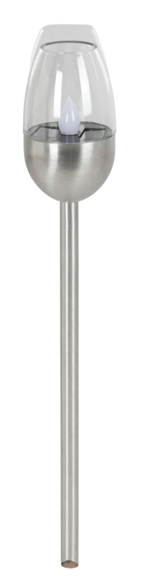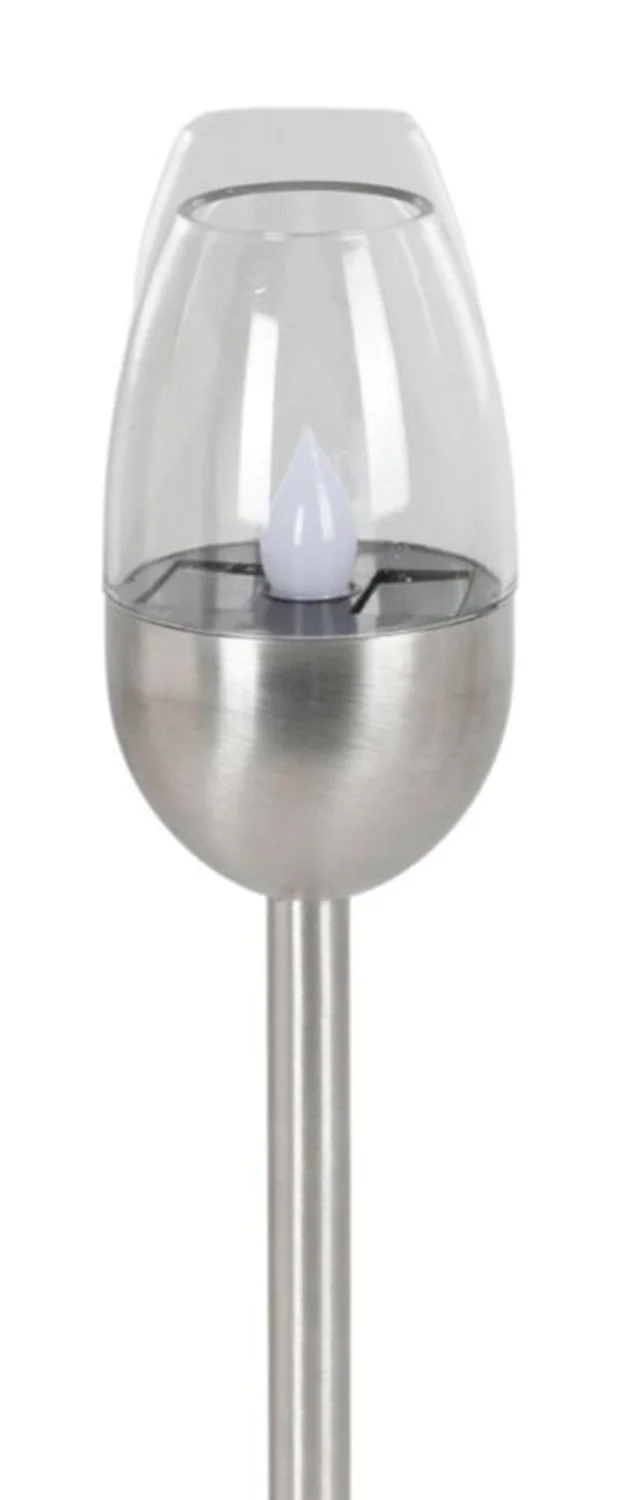 Warmweiß • kerzenähnlicher Flackereffekt • Edelstahl • solarbetrieben • mit Erdspieß