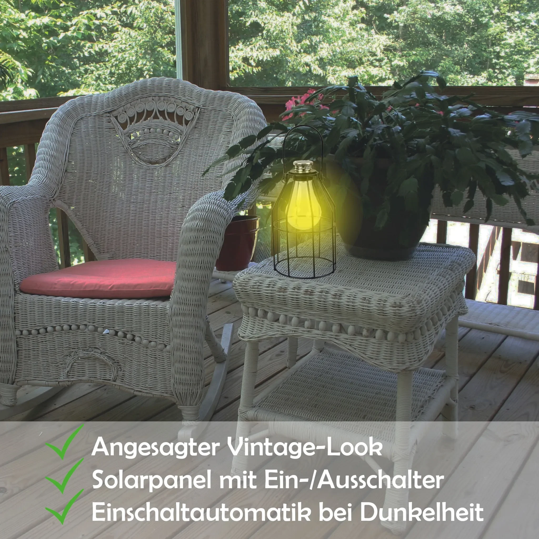 | Im Paket | 1 × LED Solar-Laterne im Vintage-Look |