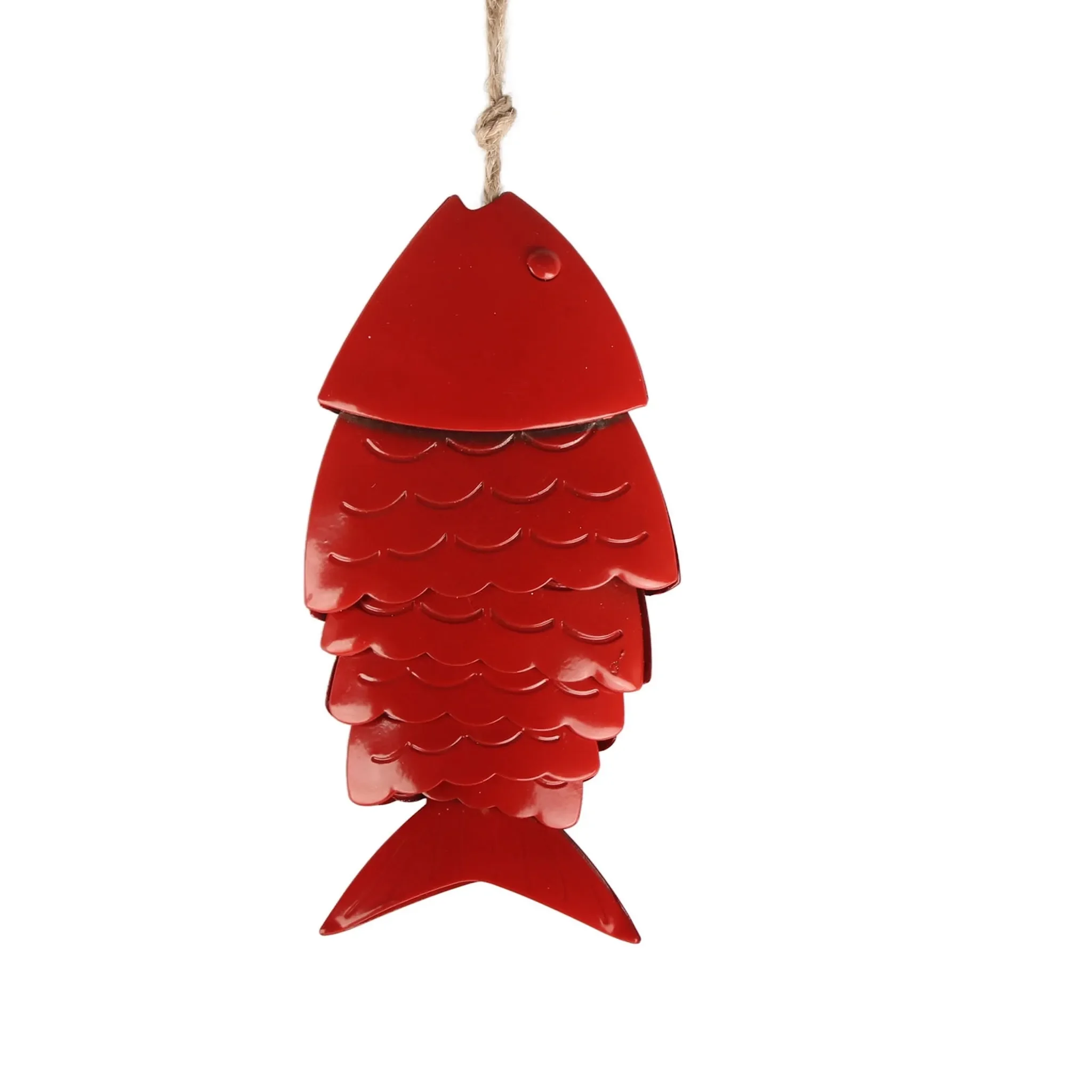 Highlights: farbenfrohes Fischmotiv, beruhigende Klangwirkung, wetterfeste Metallausführung, ideal als Geschenk, vielseitig platzierbar.