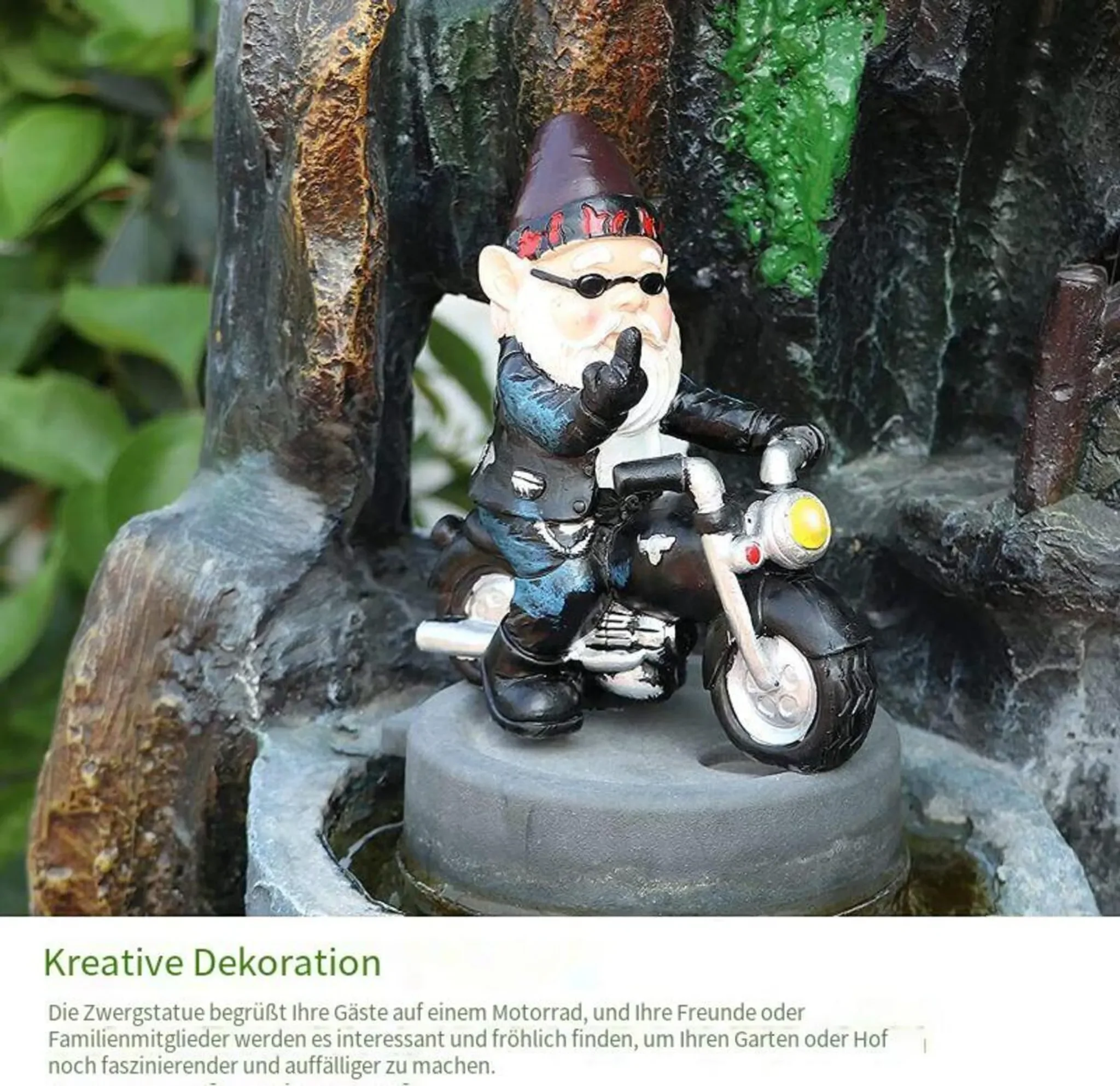 Crrynuo – Gartenzwerg „Motorradfahrer“ 13 × 13 cm