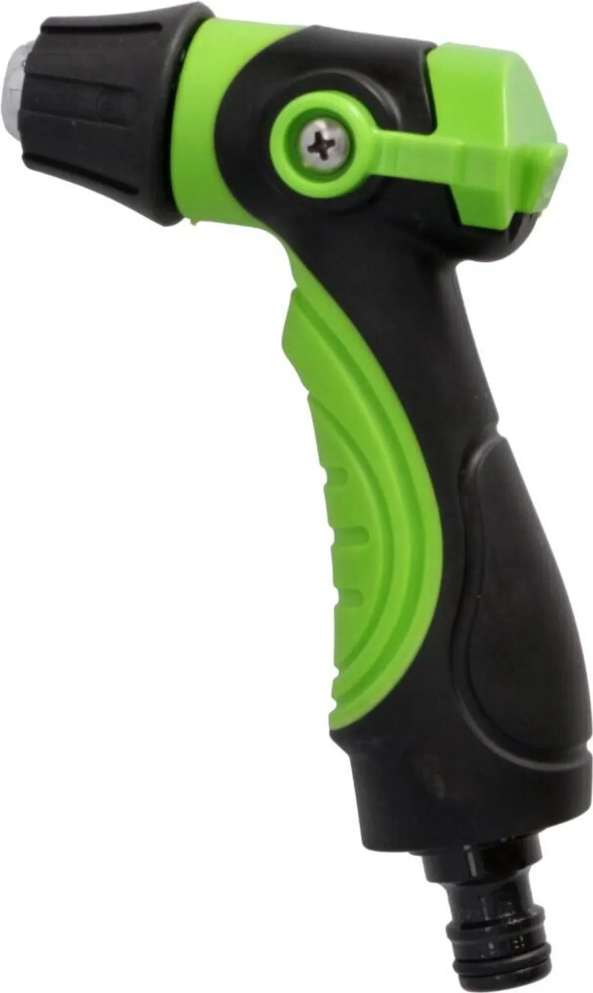Der Wasserdurchfluss lässt sich am vorderen Austritt stufenlos über eine Drehbewegung regulieren. Über die Schnellkupplung ist die Pistole sofort mit gängigen Gartenschlauchsystemen kompatibel und schnell einsatzbereit.