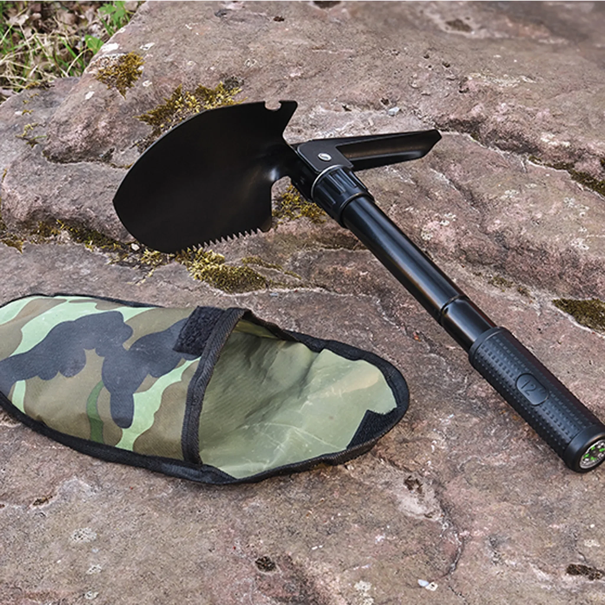 Highlights: Ultra-kompakt & tragbar, robuste Stahlkonstruktion, integrierter Kompass, multifunktional für Outdoor-Aufgaben, ideal für Camping & Notfälle.
