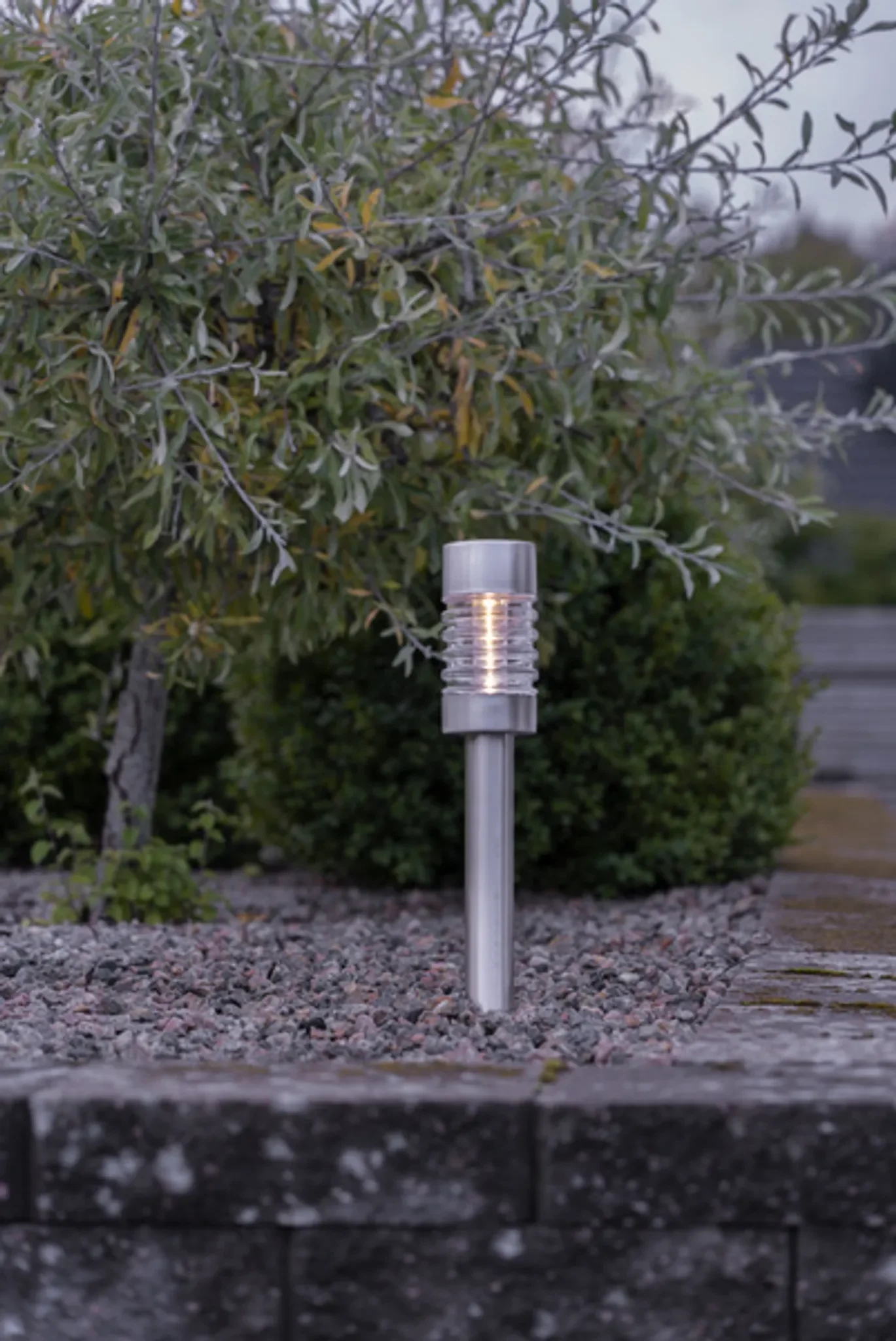 Das integrierte Solarpanel lädt tagsüber den Akku, bei Dämmerung schaltet die warmweiße LED automatisch ein. Dank Erdspieß lässt sich die kompakte Gartenleuchte schnell und sicher im Boden platzieren – ohne Kabel, ohne Strom.