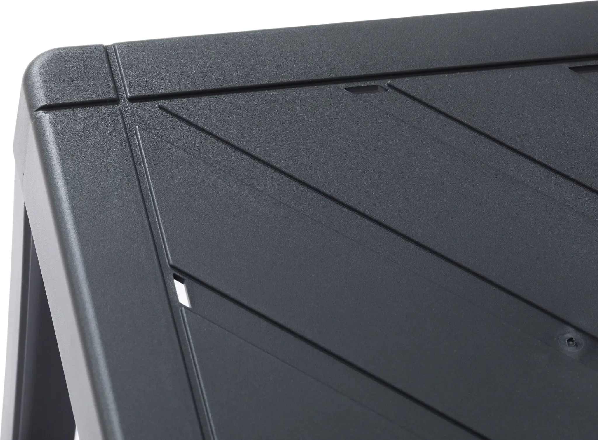 Der quadratische Gartentisch „POP“ von Toomax überzeugt durch seine kompakte Form und das leichte Kunststoffmaterial, das sich sowohl im Innen- als auch im Außenbereich bewährt. In moderner Graphitfarbe gestaltet, fügt er sich harmonisch auf Balkon, Terrasse oder im Garten ein.