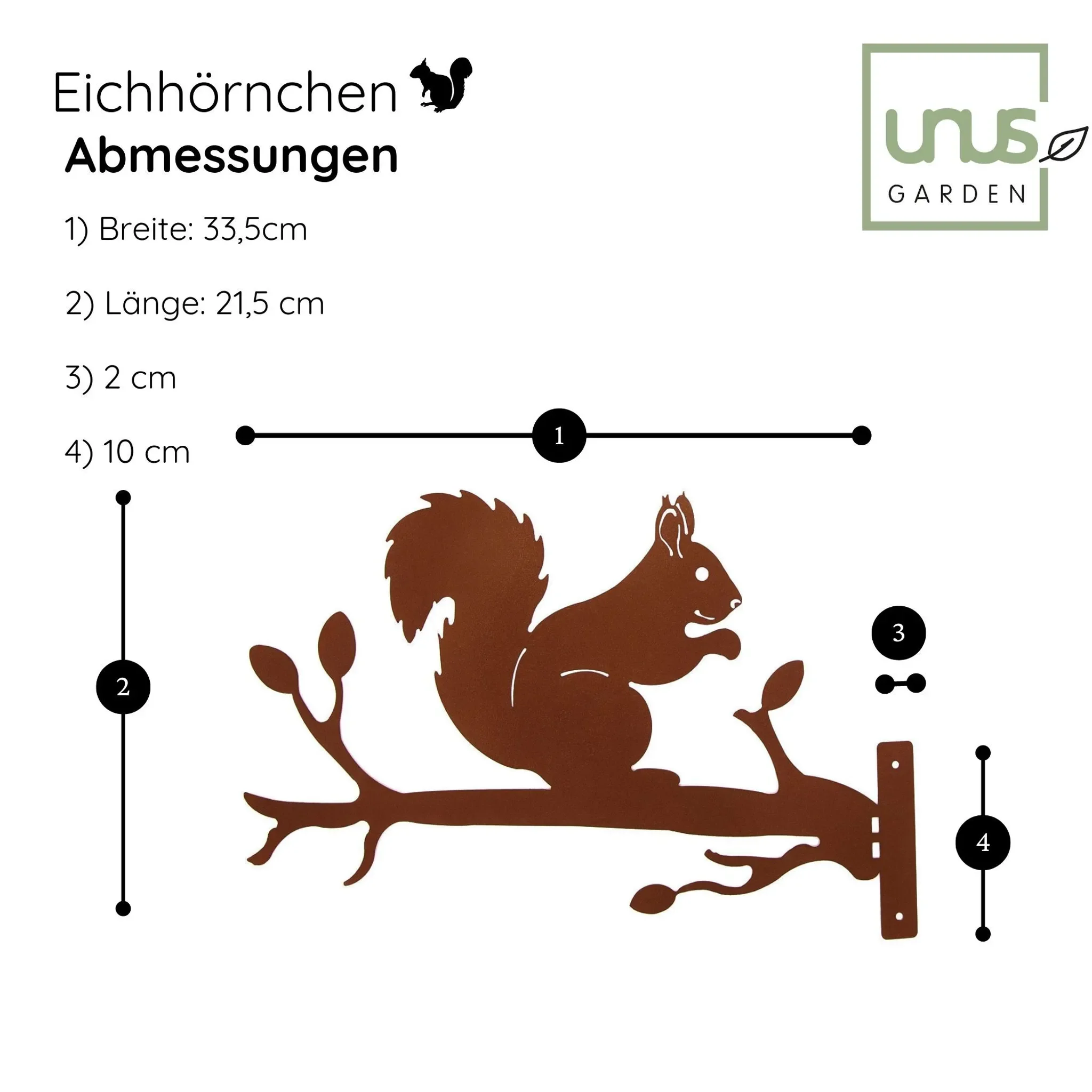 UNUS – Gartenstecker „Eichhörnchen auf Ast“, Rostoptik